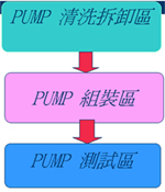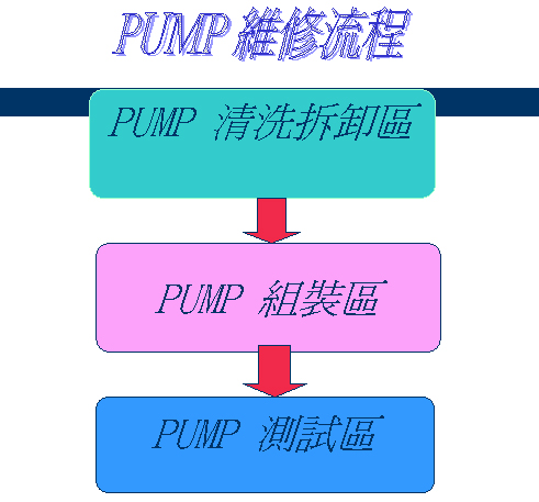 PUMP repairs the flow PUMP Disassemblage area flow chart PUMP assembly area flow chart PUMP Test area flow chart PUMP The disassemblage cleans the NG flow char PUMP The assembly or hunts leaks the NG flow chart PUMP Tests the NG flow chart